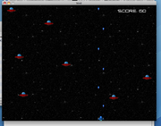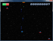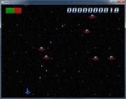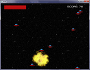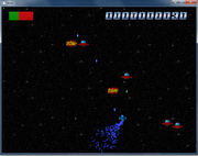 215 KB | Screenshot with placeholder explosions for aliens and the implemented particle engine | 1 |